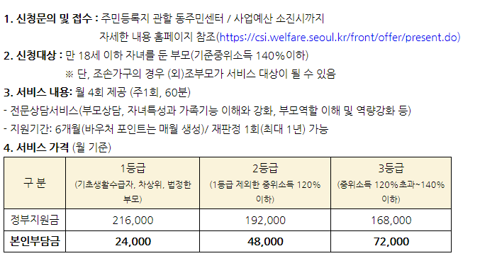 지역마다 지원이 달라요. 주민센터 담당자한테 문의해 보세요. 저희 동네에 부모 심리 지원이 있는지 찾아봐야 겠네요! 혹시 다른 지원 있으면 알려주세요.